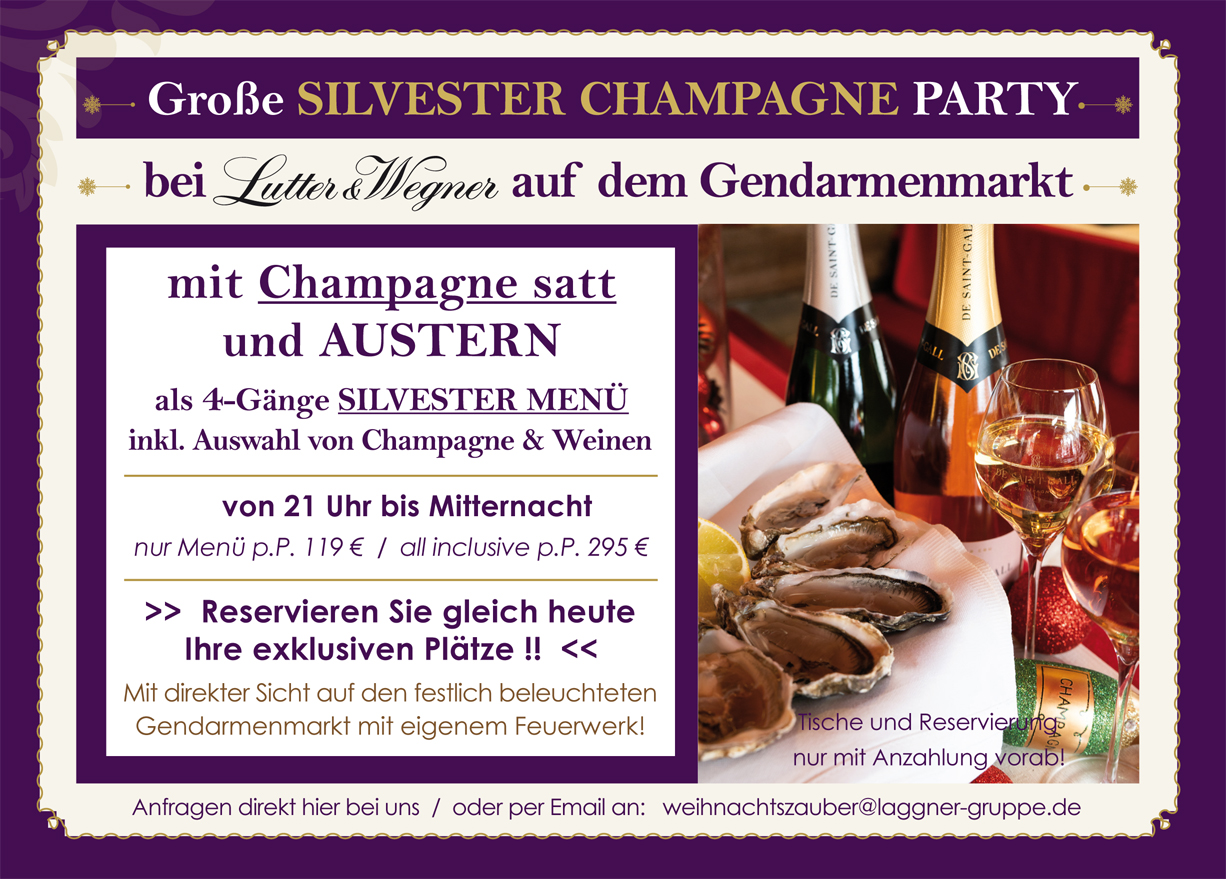 mit Champagne satt, frischen Austern und einem festlichen 4-Gänge Silvester-Menü!